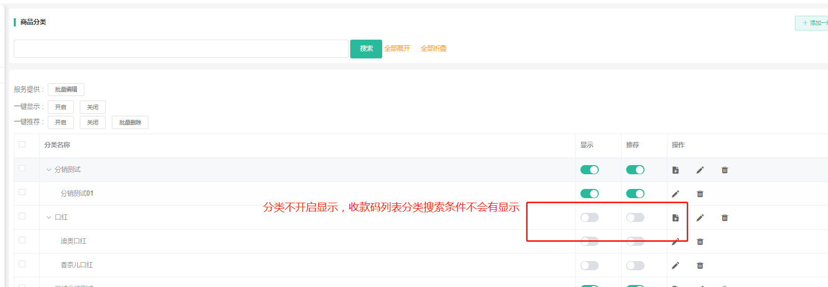 (1)收款码列表分类,仅显示开启状态的商品分类。