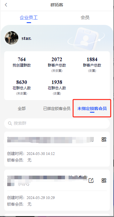 1、会员中心—群拓客—企业员工