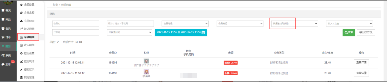 财务—余额明细—业务类型:增加“群拓客活动奖励”