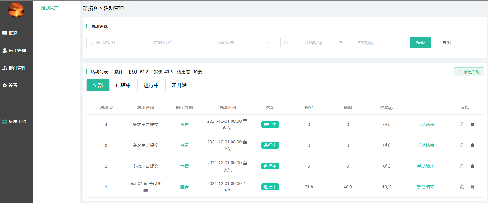 2、登录企业管理平台--应用中心--群拓客奖励—活动管理