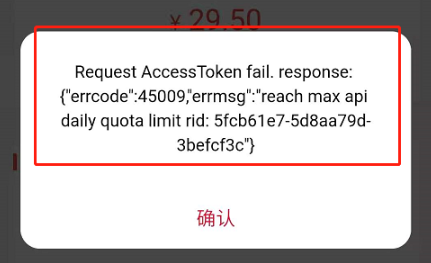 八、微信支付报错:45009,Request AccessToken fail. response: {“errcode”:45009,”errmsg”:”reach max api daily quota limit rid: 5fcb61e7-5d8aa79d3befcf3c”}